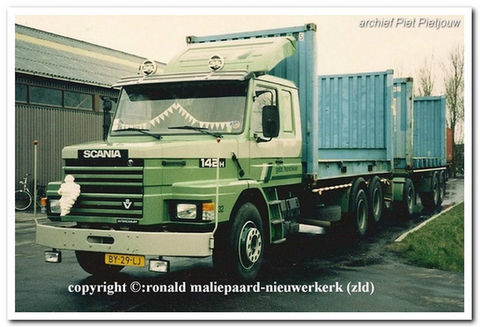 De eerste vermelding van het feit dat onze familie vrachtrijders waren bestaat uit 1887, dat was nog met paard en wagen. De eerste vrachtauto is in gebruik genomen in 1921 en was tevens de eerste vrachtauto op het eiland Schouwen - Duiveland alwaar de oorsprong ligt van ons bedrijf. De vrachtauto op de foto was de eerste. De eerste vierasser van het bedrijf was een afzetbak voor conventionele lading toen konden we nog alles met één auto. Het is ook nog een kipper, de BD-51-SP uit 1982.